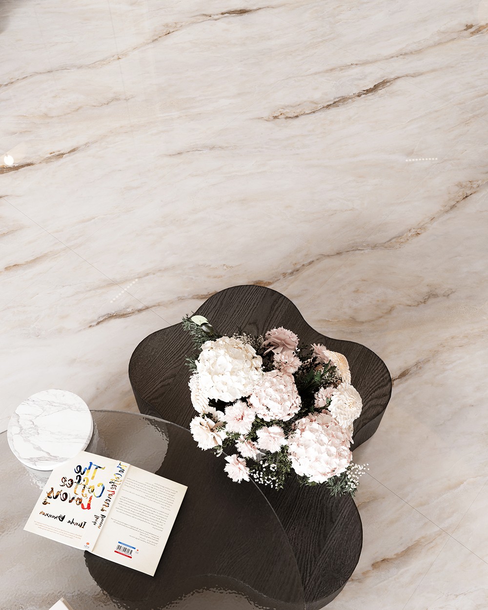 冷調基底蘊冰晶之韻,米棕紋理漾晨光暖意,彩晶干粒勾勒冬去春來的含蓄漸變。