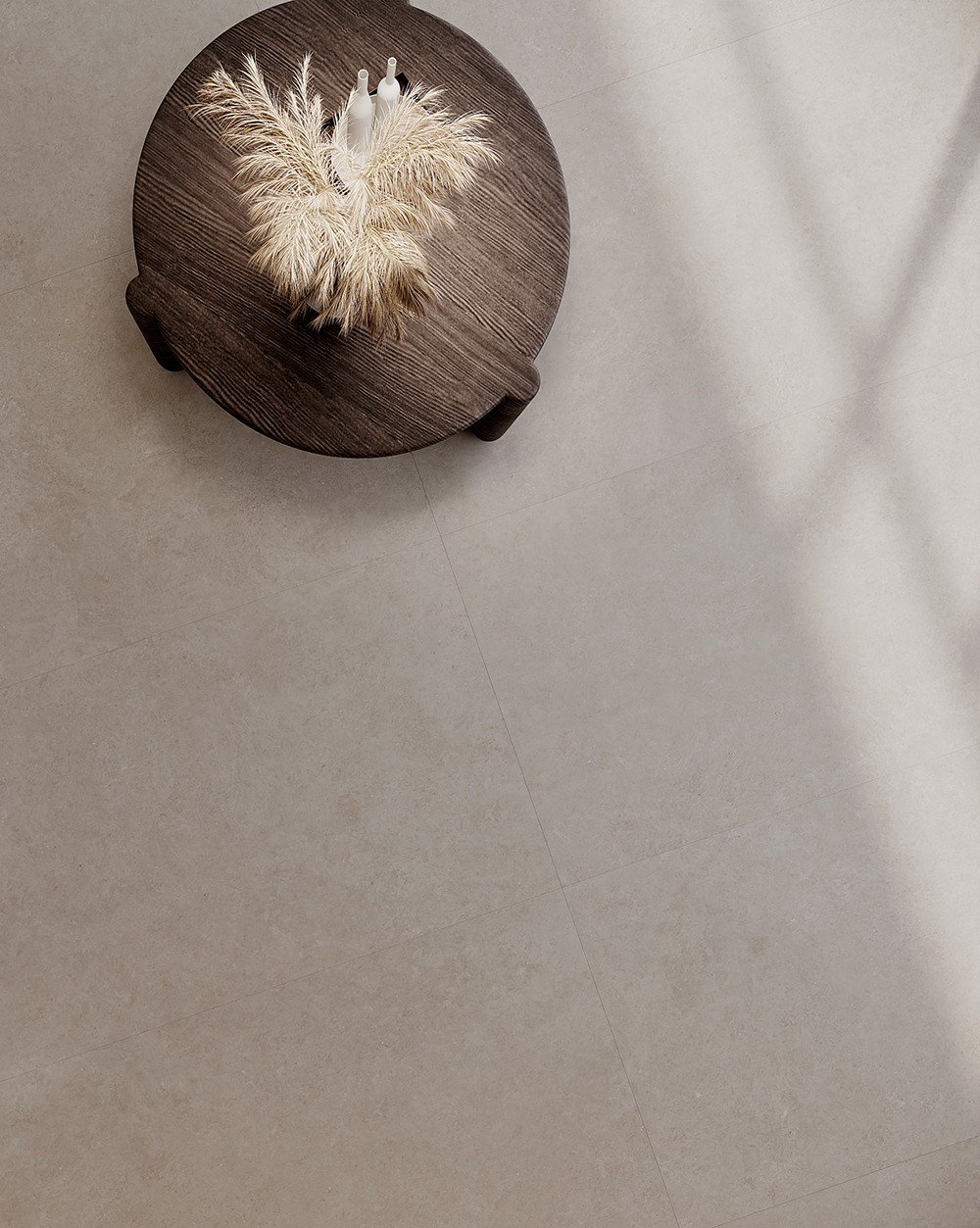 奶杏如晨霧初融,微啞表面蘊藏舊石的溫潤。細啞仿古肌理細膩柔和,色調(diào)恬靜,為空間注入一縷清淺而持久的暖意。