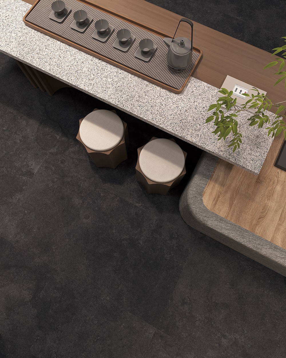 耀黑色澤,啞光表面仿佛夜幕低垂于古巖之上。肌理沉靜內斂,不張揚卻自有重量,為空間注入克制而溫厚的暗調詩意。