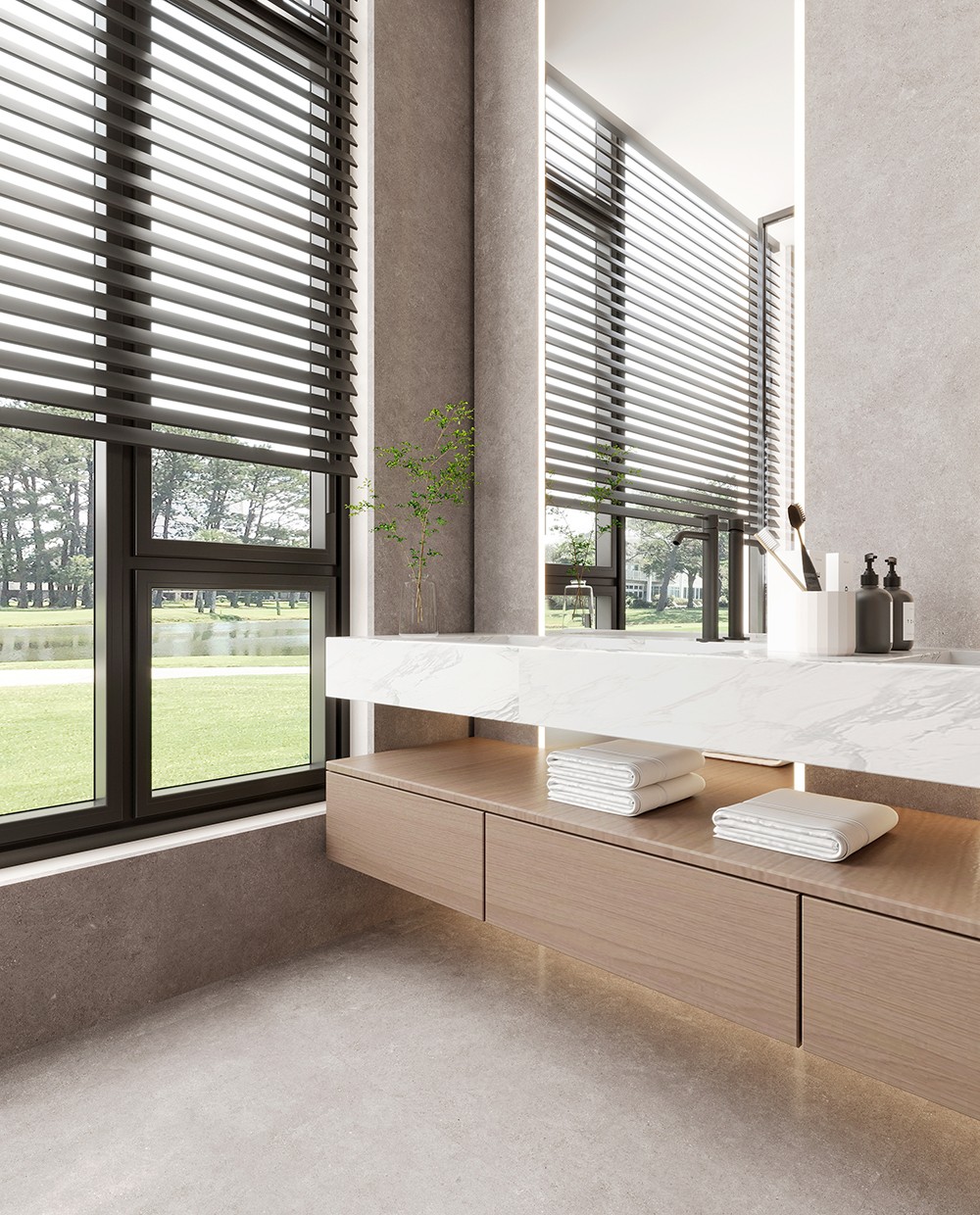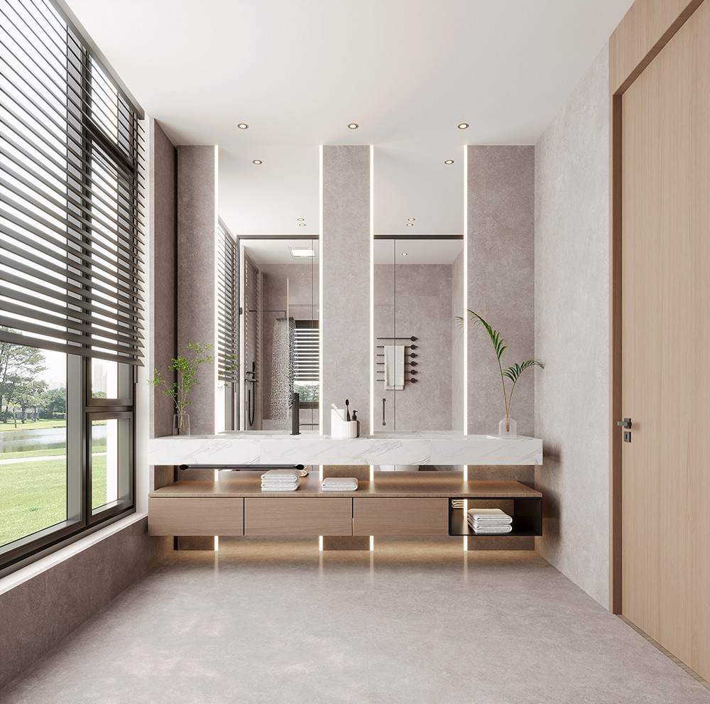 薄霧灰,如云煙凝于石面。微啞光感與仿古肌理交織,清冷中藏溫潤,為空間鋪展一脈沉靜的留白。