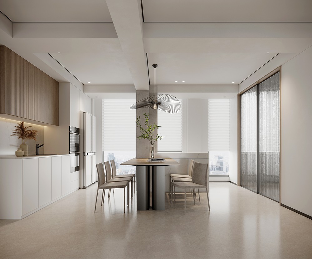 光與影的絕妙平衡,經過流光靈動著釉面每寸肌理,斑駁的光影層層灑落,從搖曳縫隙中觀察時節變化,栩栩如生。